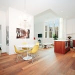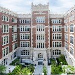 The development team reconfigured the interior of the school, converting classrooms, offices, the cafeteria, and the gymnasium into large apartments with 12-foot ceilings. The building, originally designed by Charles B.J. Snyder, the chief architect for New York’s public schools at the turn of the 20th century, featured expansive windows, and these were upgraded but kept in order to maintain views of the landscaped courtyards and allow extensive daylighting. The development received an award from the New York Landmarks Conservancy for its respectful renovation.