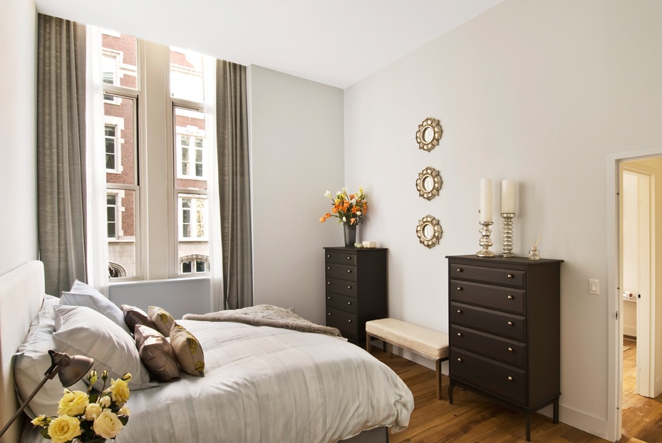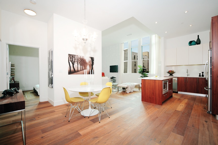 Additionally, the school’s former auditorium was retrofitted to become the first permanent home of the National Dance Institute, a nonprofit organization that brings dance into schools. Residents enjoy a community media lounge and a workroom for craft projects. “It’s not a loft, but the building feels like that interesting space,” Moelis says. “The exterior of the building really honors the history, but the interior is totally new.”