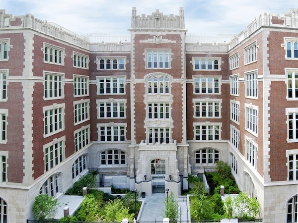 The development team reconfigured the interior of the school, converting classrooms, offices, the cafeteria, and the gymnasium into large apartments with 12-foot ceilings. The building, originally designed by Charles B.J. Snyder, the chief architect for New York’s public schools at the turn of the 20th century, featured expansive windows, and these were upgraded but kept in order to maintain views of the landscaped courtyards and allow extensive daylighting. The development received an award from the New York Landmarks Conservancy for its respectful renovation.
