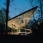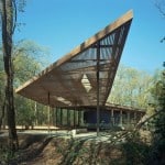 Rolling paths called “landscape journeys” were designed throughout the park, leading directly to the deck of the building. To preserve the appearance of an untouched landscape, trees were removed selectively, and the logs and branches that had fallen onto the site prior to construction were catalogued and temporarily moved until the building’s completion. They were then reintroduced to the site so that the area surrounding the pavilion still gives the illusion of an untouched woodland.