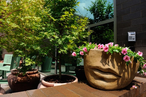 To build a positive experience for patients and their families, a gently curved hallway with positive architectural distractions—such as warm wood-grain walls—leads patients to the radiation center.And NCI also has, despite its location in a dense urban environment, a healing garden with native plantings, a stone water feature, and blown-glass art. “Although we had to fit a very large program into a very small site,” Boome says, “we wanted to be able to provide a refuge for our patients.”