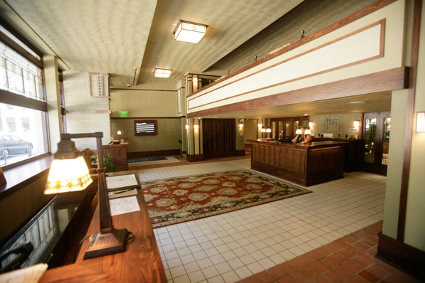 Mason City is now celebrating the restored landmark’s presence in its main business corridor. A century ago, two Mason City attorneys commissioned Wright, then just a popular Chicago architect, to design the hotel and adjoining bank building after seeing Wright’s work in the Windy City five hours to the northwest. Along with the hotel, Wright designed a few Mason City homes. “The Historic Park Inn was right on a very popular, busy corner in Mason City, and it was the pinnacle of style,” Noto says. “For a lot of the community, it had been a forgotten gem, but many people worked for years and years to preserve and save it. For us, having it in our home town, it was a natural fit for Stoney Creek to operate it.” ABQ