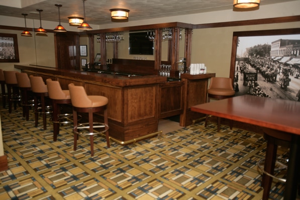 “We tried to maintain as much of the integrity of the original design and yet make it functional for travelers and corporate guests.” The hotel and adjoining bank building were taken down to their stud walls, mold and asbestos were removed, and the foundation was fortified before the building could be restored.